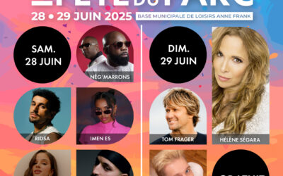 Découvrez la programmation de la 33ème édition de la Fête du Parc 28 et 29 juin 2025 – Base municipale de loisirs Anne Frank Pour cette 33ème édition du festival 𝐿𝑎 𝐹𝑒̂𝑡𝑒 𝑑𝑢 𝑃𝑎𝑟𝑐, retrouvez sur deux jours : 𝑱𝑨𝑫 – 𝑹𝑰𝑫𝑺𝑨 – 𝑩𝑰𝑨𝑵𝑪𝑨 𝑪𝑶𝑺𝑻𝑨 – 𝙄𝑴𝙀𝑵 𝑬𝑺 – 𝑵𝑬𝑮 𝑴𝑨𝑹𝑹𝑶𝑵𝑺, mais aussi 𝑴𝑨𝑿 […]