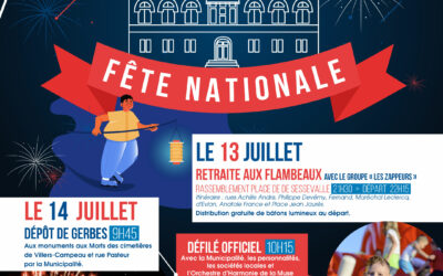 [Fête Nationale] Retrouvez le programme des festivités pour le 13 et le 14 juillet 2025 ! Le 13 juillet : la traditionnelle retraite au flambeaux, départ place de DE SESSEVALLE à partir de 21h30. Le 14 juillet : dépôts de gerbes, défilé officiel au matin, jeux gonflables pour les enfants en après midi sur la […]